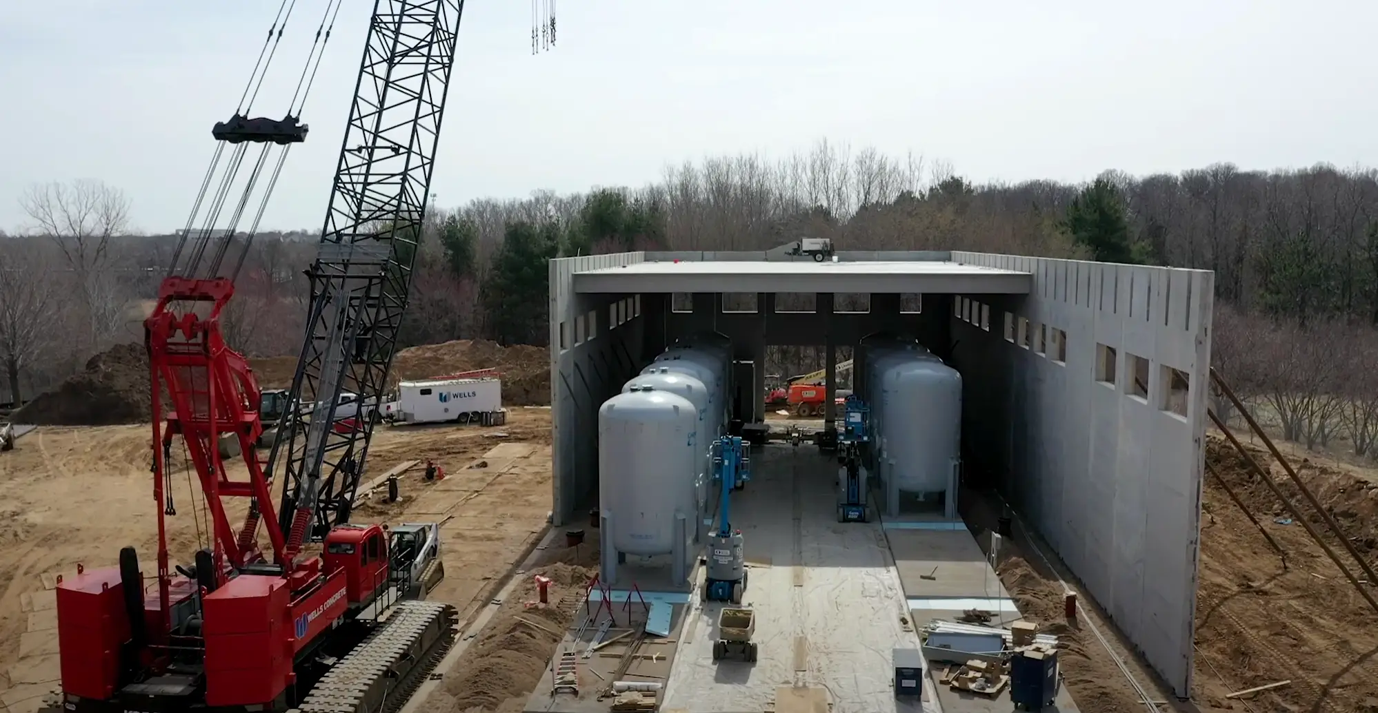The underground piping and foundation work was completed by April 1st just in time to allow GAC pressure vessels to be delivered on site with the precast wall panels the first week of April.