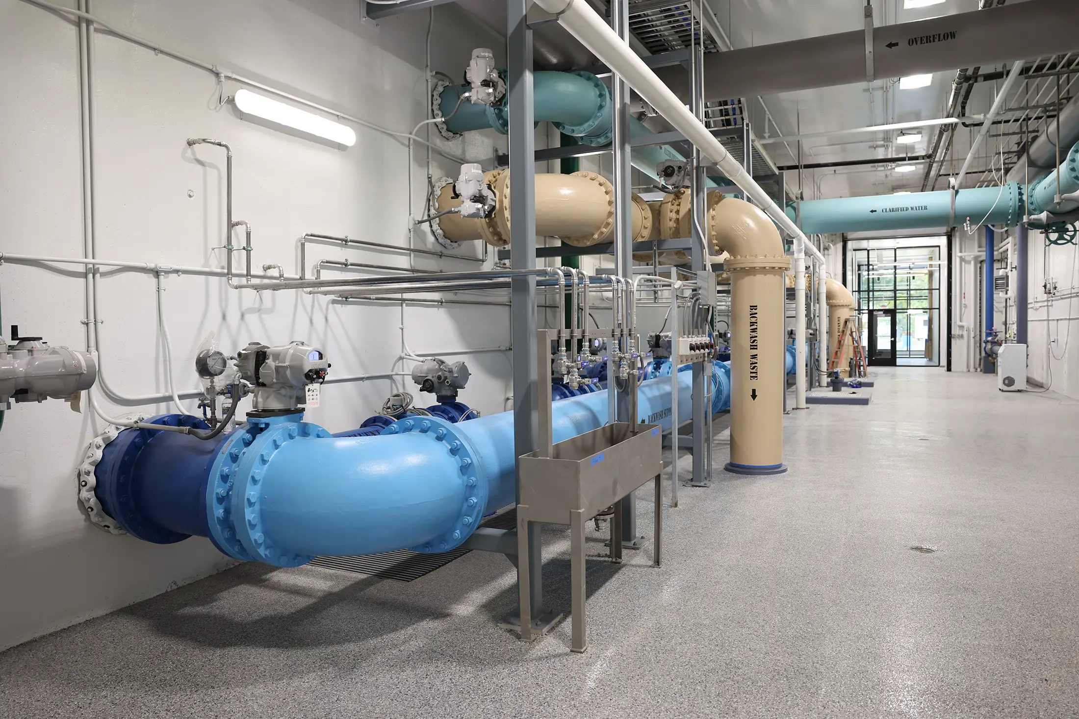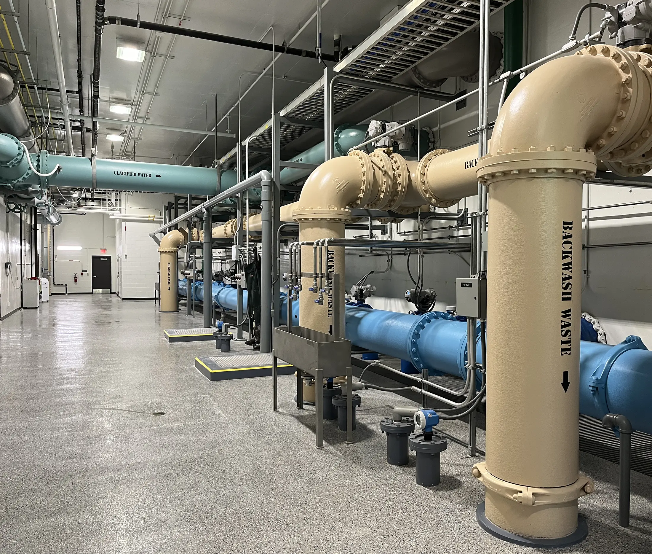 The project’s development was not just about meeting technical requirements – it was a holistic endeavor that aligned the facility’s design with the needs of both its operators and the community, ensuring it would be valuable and sustainable for years to come. The design incorporates several key features, including a clearwell to replace existing ground storage facilities, designated office space for operations staff, workshop area, laboratory, ample storage capacity, outdoor parking area that can also service the nearby outdoor recreation facility, and a drive through garage capable of housing large chemical delivery trucks. Large translucent panels allow natural light into the building, which reduces electrical costs.